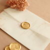 Convite tamanho metade da folha sulfite (A5) + envelope de bico vertical + lacre de cera desenho padrão (dentro dos modelos que temos em nossa tabela).